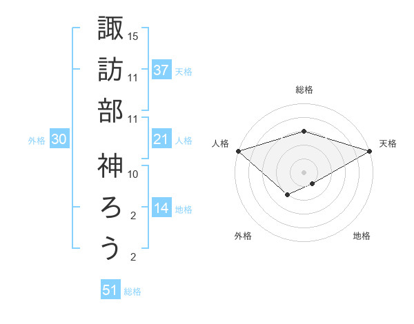 諏訪部 神ろうさんを姓名の画数から五運を鑑定
