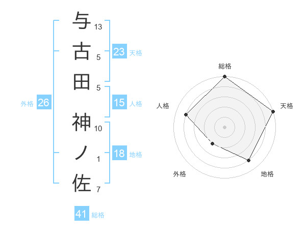 与古田 神ノ佐さんを姓名の画数から五運を鑑定