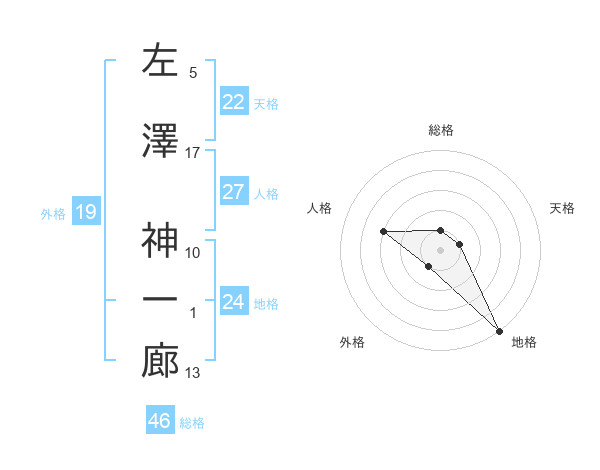 左澤 神一廊さんを姓名の画数から五運を鑑定
