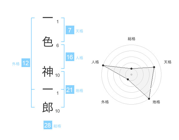 一色 神一郎さんを姓名の画数から五運を鑑定