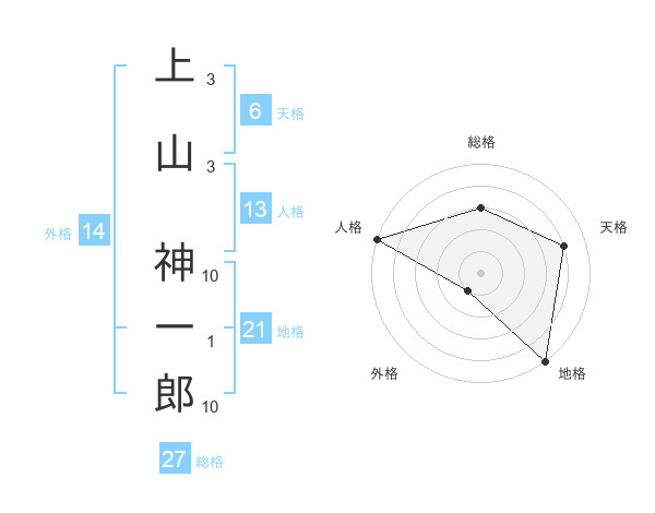 上山 神一郎さんを姓名の画数から五運を鑑定