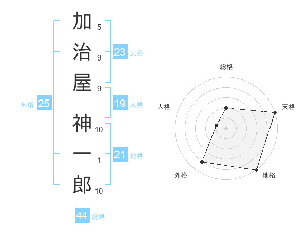 加治屋 神一郎さんを姓名の画数から五運を鑑定