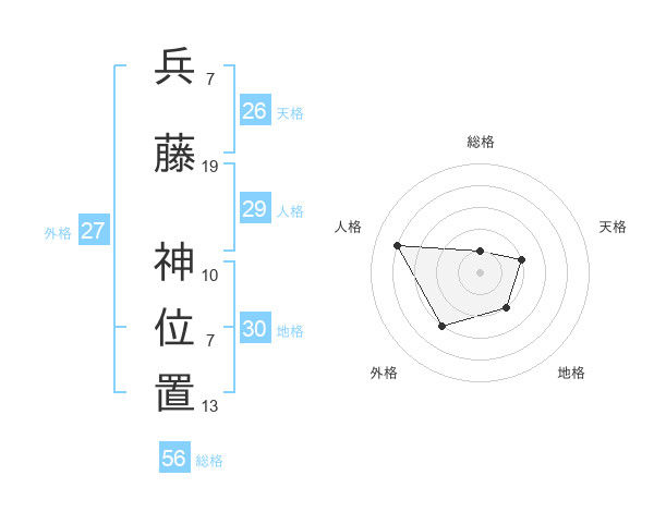 兵藤 神位置さんを姓名の画数から五運を鑑定