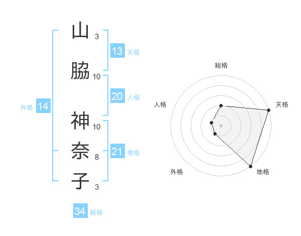 山脇 神奈子さんの総格は34画の2点!