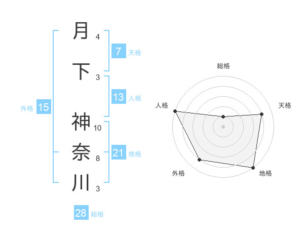 月下 神奈川さんの地格は21画の5点!