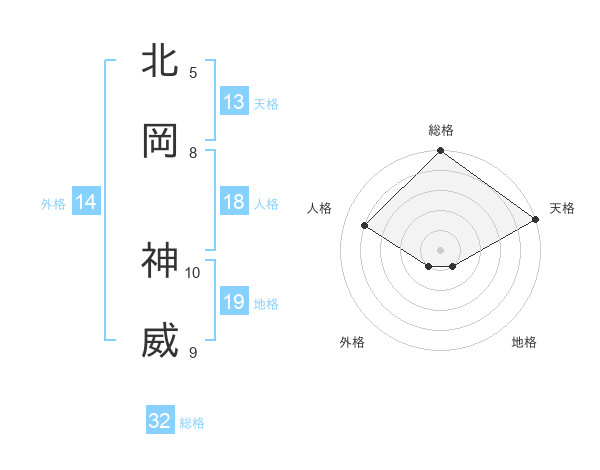 北岡 神威さんの総格は32画の5点!