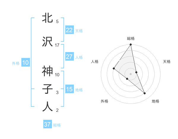 北沢 神子人さんの総格は37画の5点!