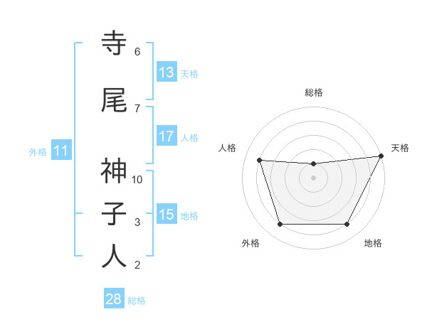 寺尾 神子人さんを姓名の画数から五運を鑑定