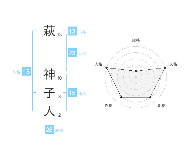 萩 神子人さんの天格は13画の5点!