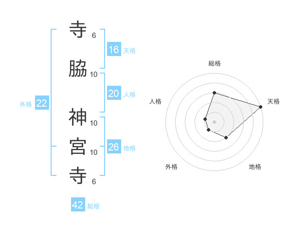 寺脇 神宮寺さんの天格は16画の5点!