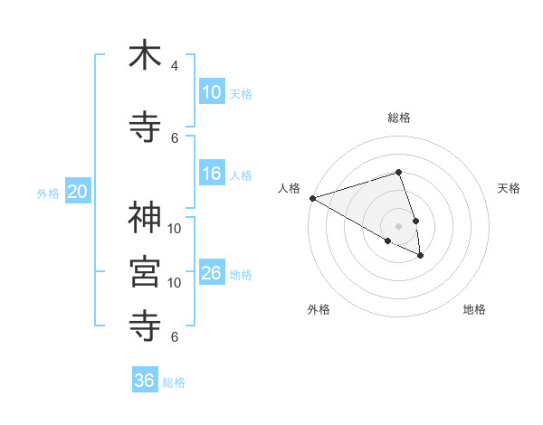 木寺 神宮寺さんの総格は36画の3点!