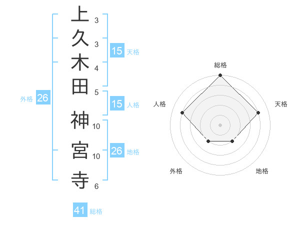 上久木田 神宮寺さんを姓名の画数から五運を鑑定