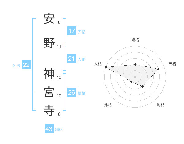 安野 神宮寺さんを姓名の画数から五運を鑑定