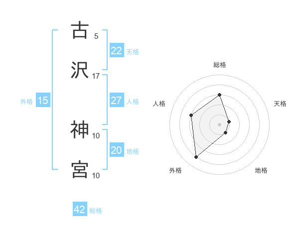 古沢 神宮さんの総格は42画の3点!