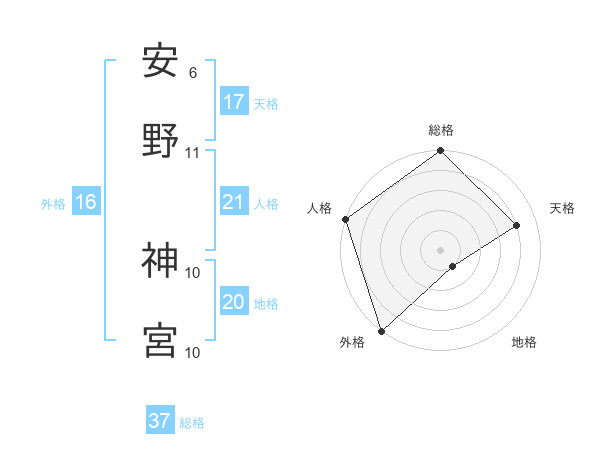 安野 神宮さんの総格は37画の5点!
