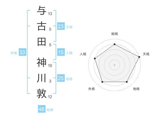 与古田 神川敦さんの天格は23画の5点!