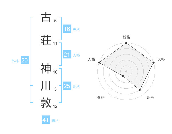古荘 神川敦さんの総格は41画の5点!