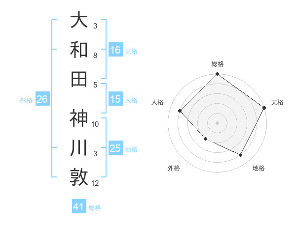 大和田 神川敦さんの総格は41画の5点