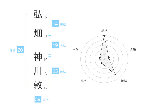 弘畑 神川敦さんの総格は39画の5点!