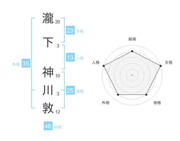 瀧下 神川敦さんを姓名の画数から五運を鑑定
