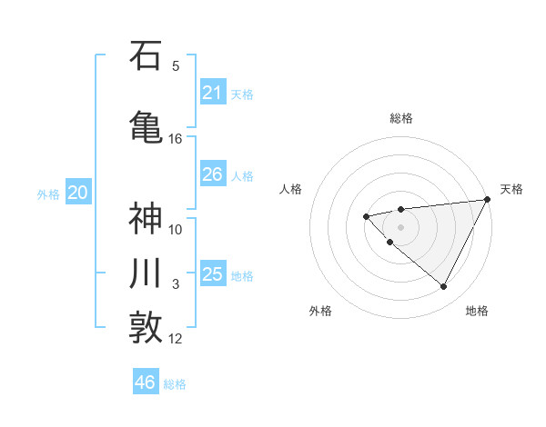 石亀 神川敦さんを姓名の画数から五運を鑑定