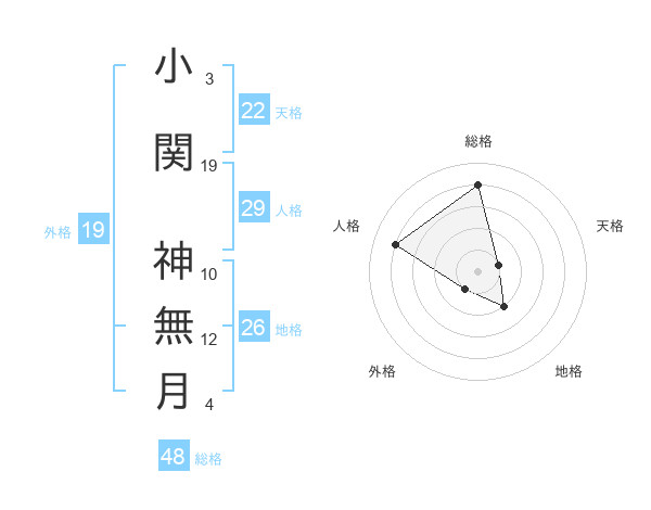 小関 神無月さんの総格は48画の4点!