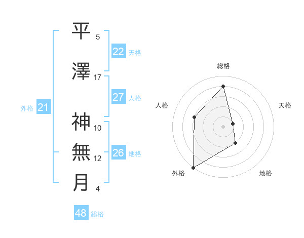 平澤 神無月さんを姓名の画数から五運を鑑定