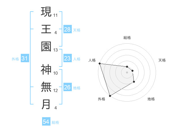 現王園 神無月さんを姓名の画数から五運を鑑定