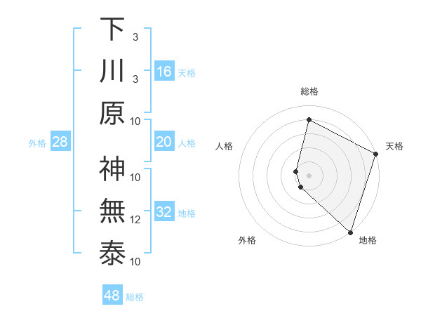 下川原 神無泰さんを姓名の画数から五運を鑑定