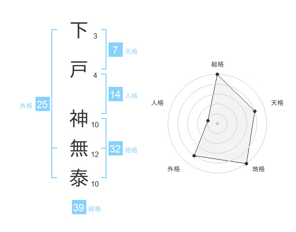 下戸 神無泰さんを姓名の画数から五運を鑑定