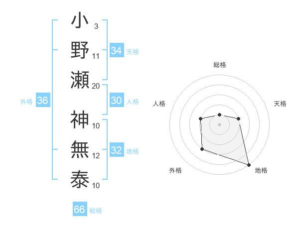 小野瀬 神無泰さんの地格は32画の5点