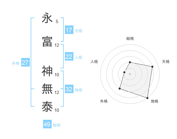 永富 神無泰さんの総格は49画の2点!