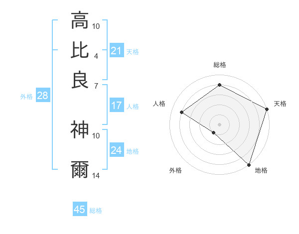 高比良 神爾さんを姓名の画数から五運を鑑定