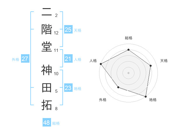 二階堂 神田拓さんの地格は23画の5点!
