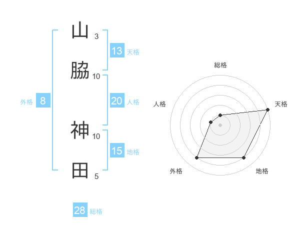 山脇 神田さんの天格は13画の5点!