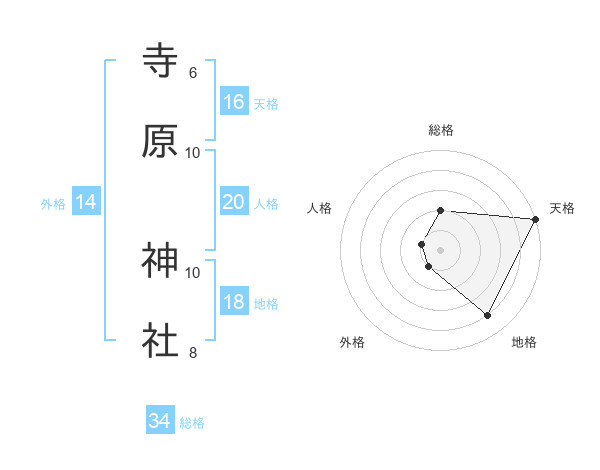 寺原 神社さんの総格は34画の2点!