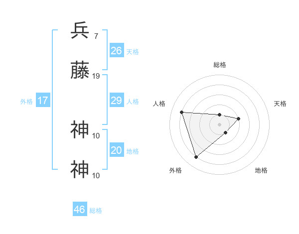 兵藤 神神さんを姓名の画数から五運を鑑定