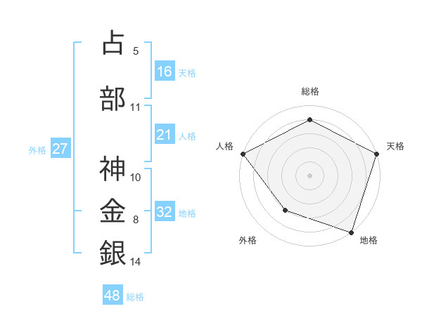 占部 神金銀さんを姓名の画数から五運を鑑定