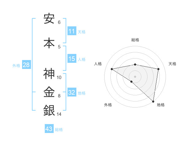 安本 神金銀さんを姓名の画数から五運を鑑定