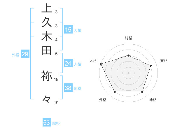 上久木田 祢々さんを姓名の画数から五運を鑑定