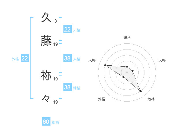 久藤 祢々さんを姓名の画数から五運を鑑定