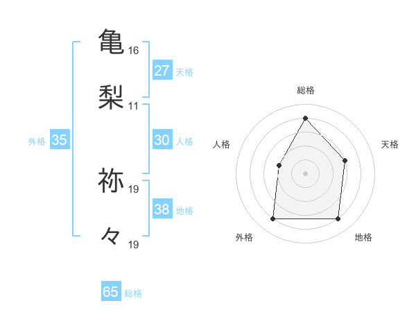 亀梨 祢々さんの総格は65画の4点!
