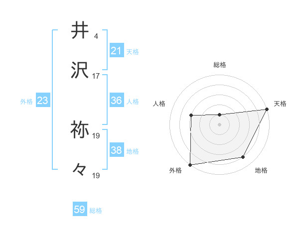井沢 祢々さんの外格は23画の5点!