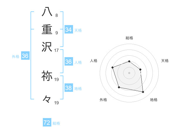 八重沢 祢々さんを姓名の画数から五運を鑑定