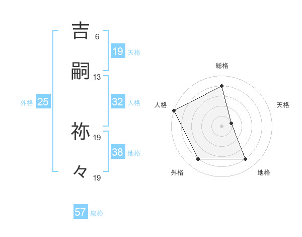 吉嗣 祢々さんの総格は57画の4点!