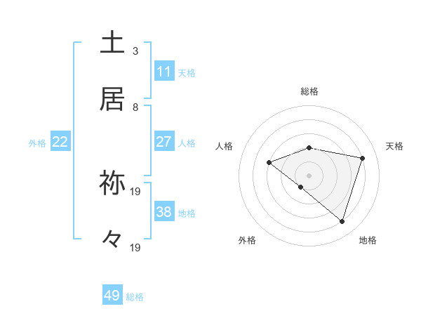 土居 祢々さんの総格は49画の2点!