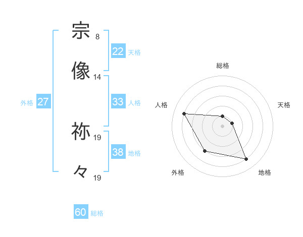 宗像 祢々さんを姓名の画数から五運を鑑定