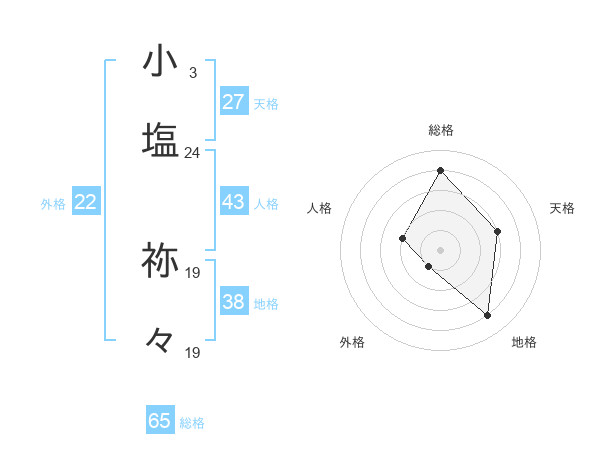 小塩 祢々さんの総格は65画の4点!