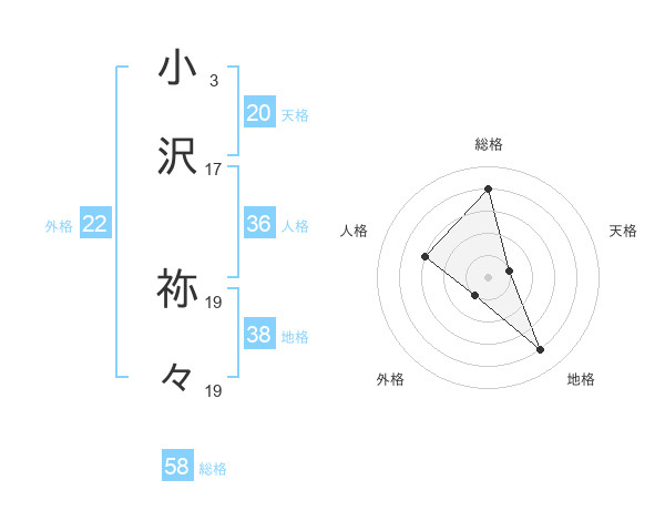 小沢 祢々さんの総格は58画の4点!