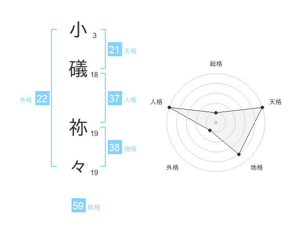 小礒 祢々さんを姓名の画数から五運を鑑定
